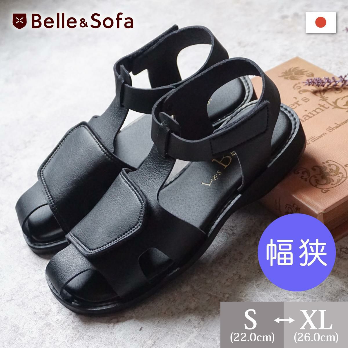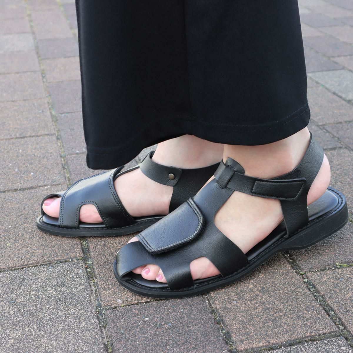 【新春セール】【幅狭特注】 フラットサンダル レディース 歩きやすい 痛くない 柔らかい マジックテープ 外反母趾でも安心 大きいサイズ ローヒール カジュアル コンフォート 黒 日本製 DAIYA 決算セール ※返品交換不可(福袋の場合も適用)【B】
