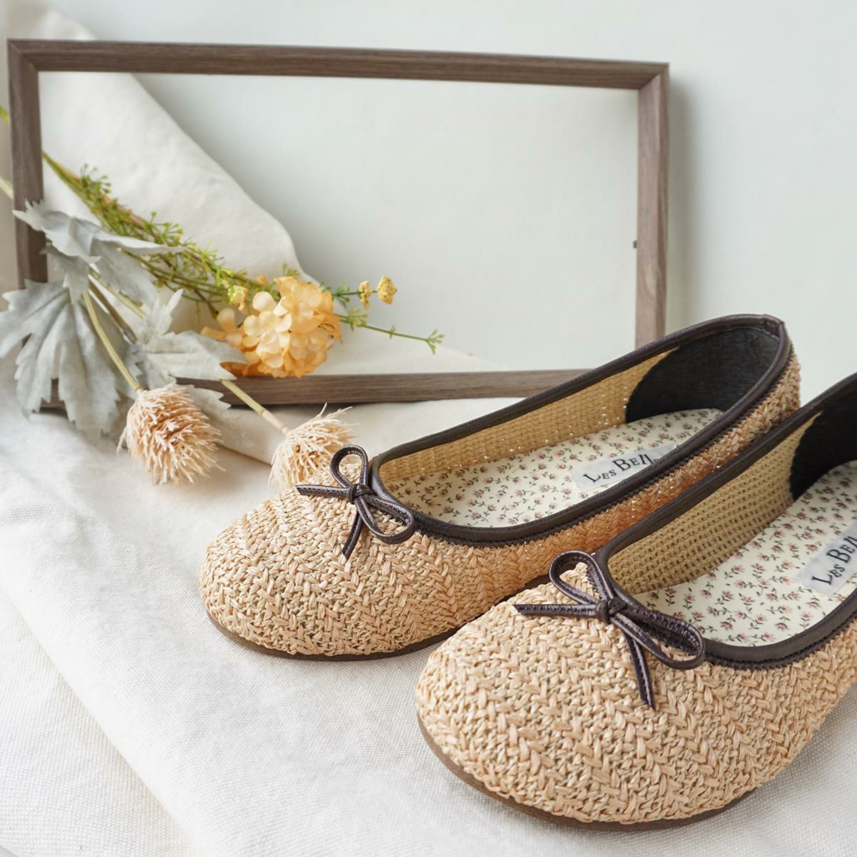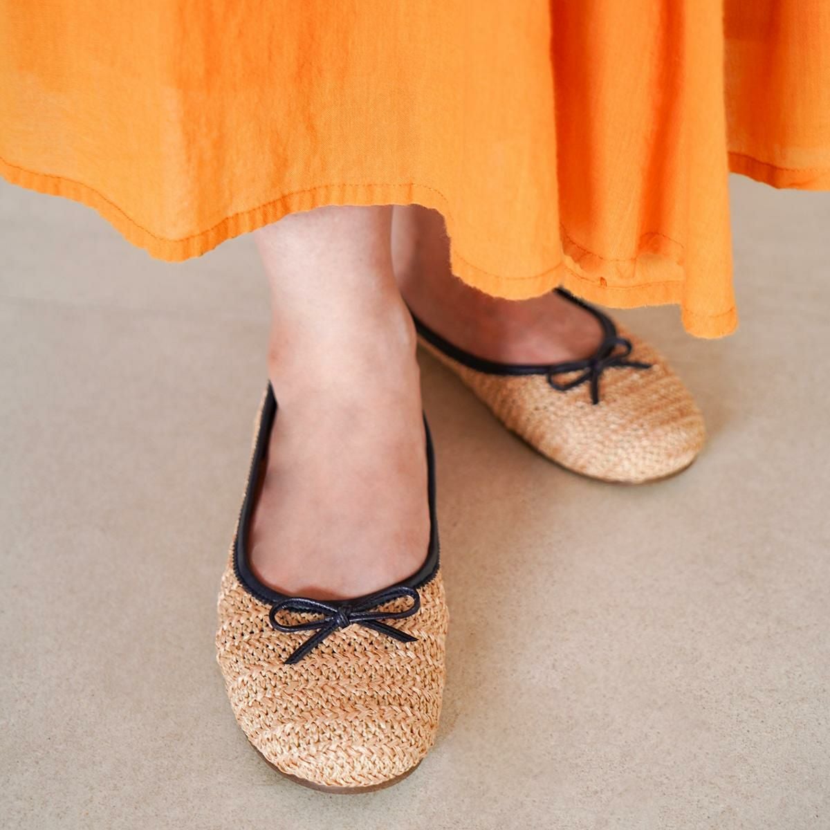 春夏にぴったりの麦わらメッシュバレエシューズ。