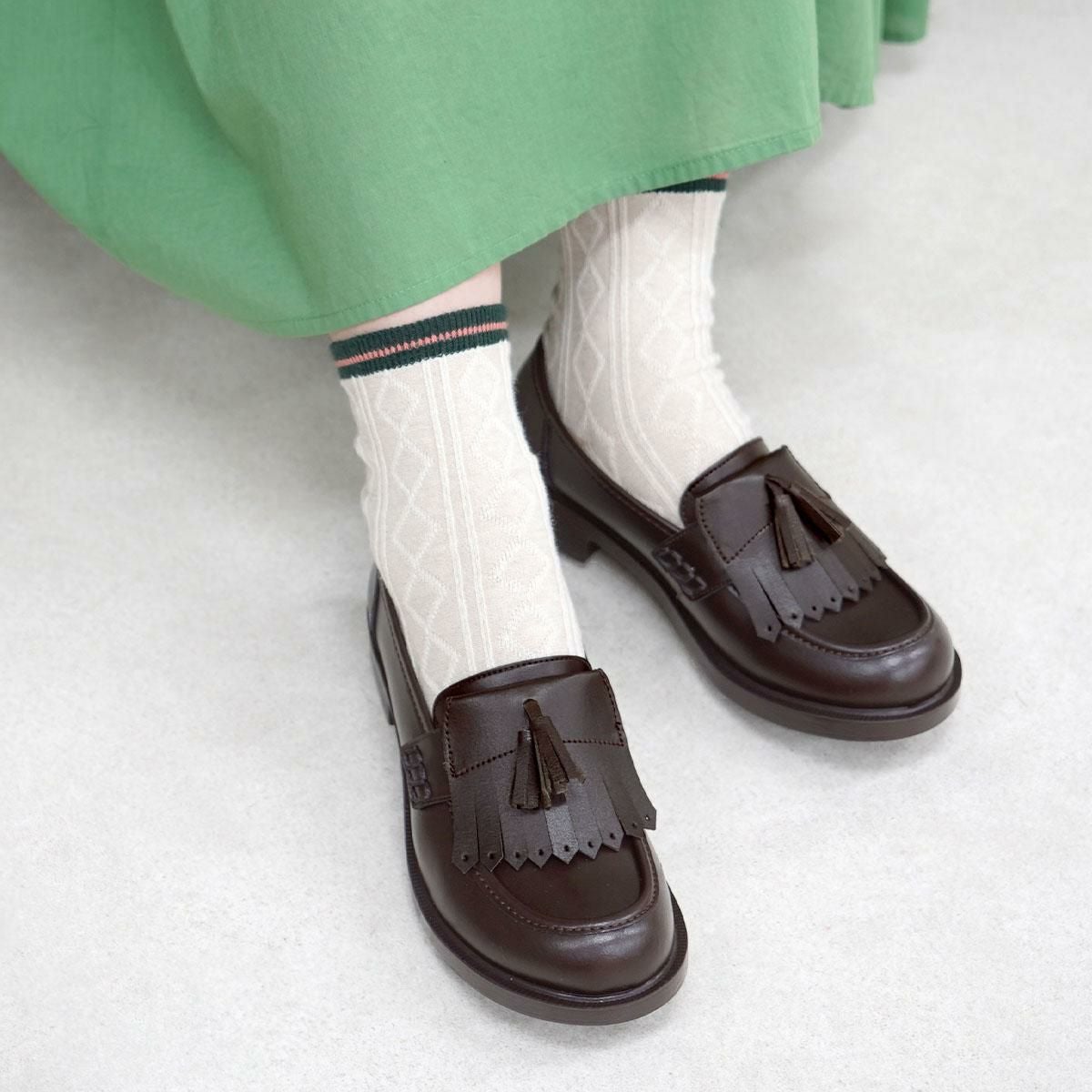 普段は通勤・通学で履くローファーにつけると、休日の私服に合わせてクラシカルにも。