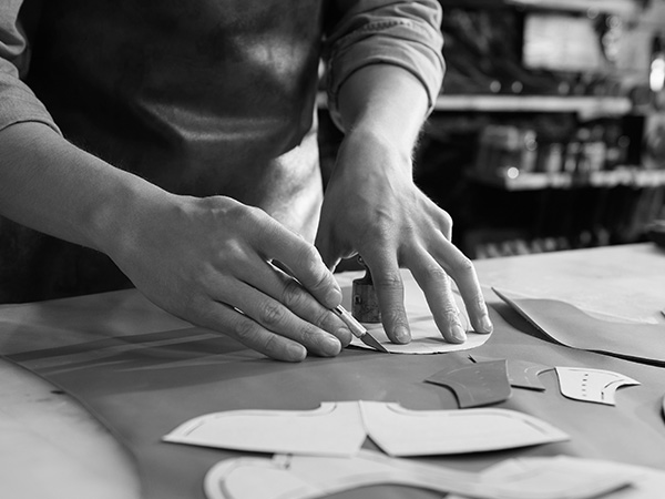 ベルではデザインや裁断から自社工房で行っており、沢山の工程をへて靴が出来上がります。